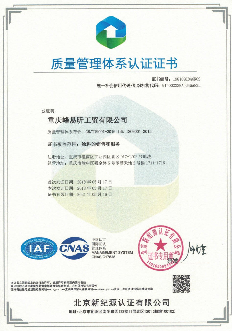 • 熱烈祝賀重慶峰易昕工貿有限公司